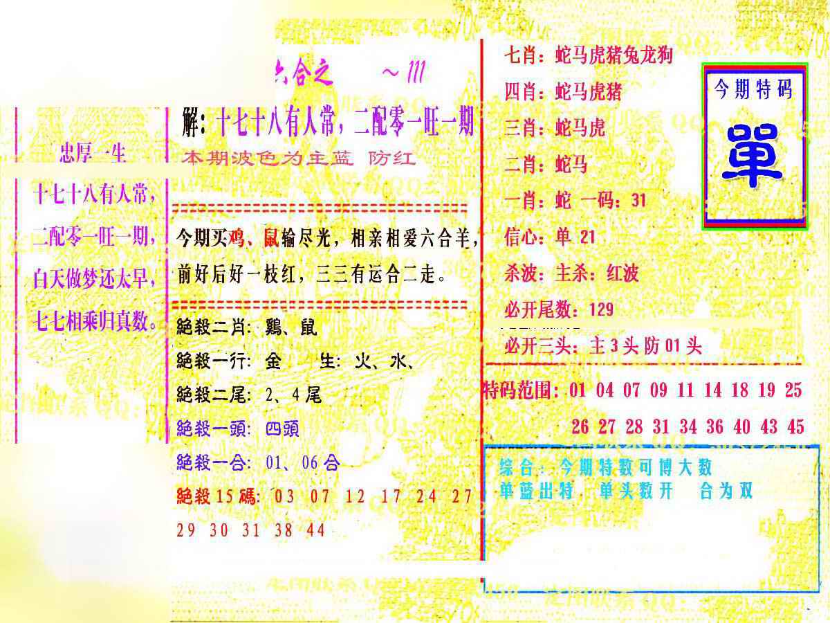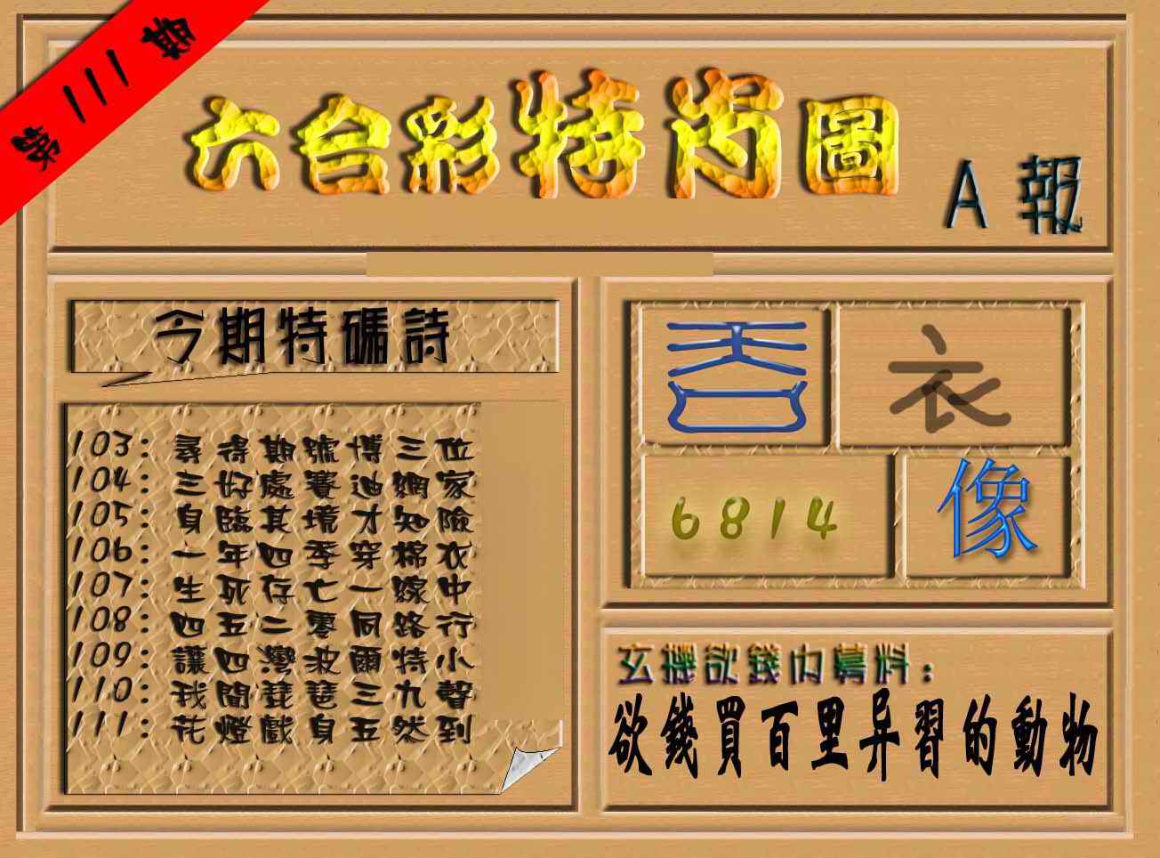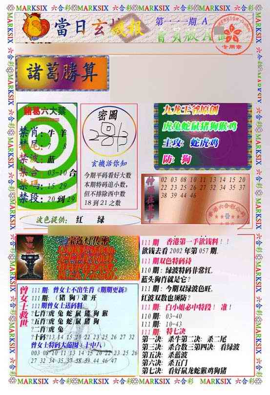063 六合禅机A 064 六合禅机B 069 特 新 报A 070 特 新 报B
