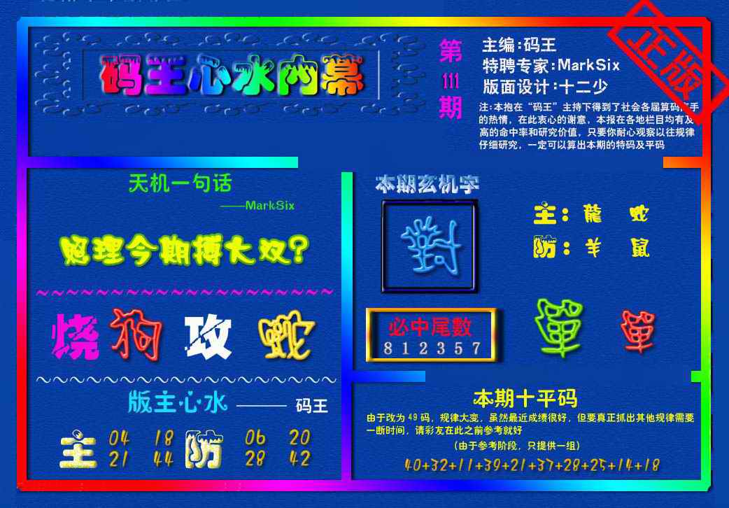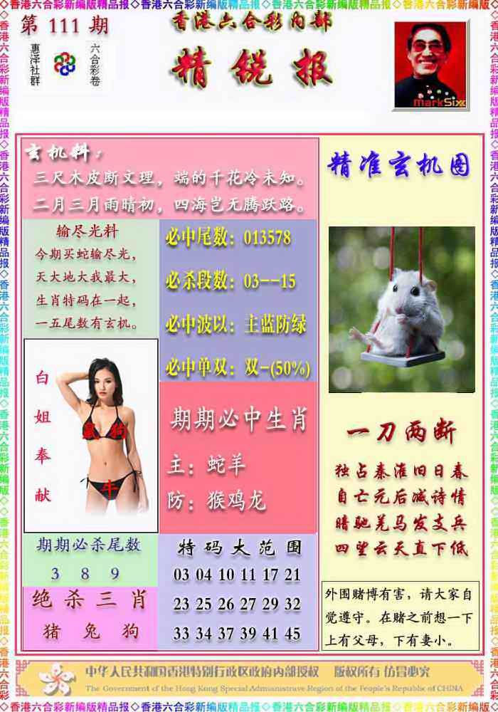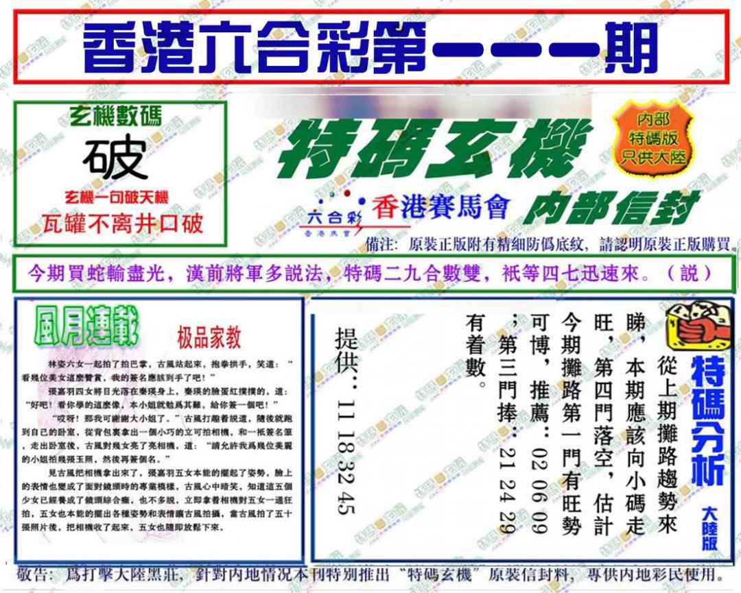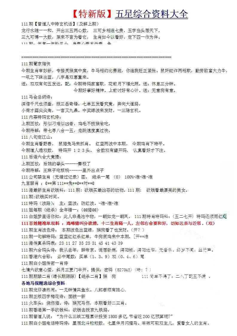 1581 精准传真报 1582 新天线宝宝内幕报 1583 当期狗仔版 1585 白姐泄密