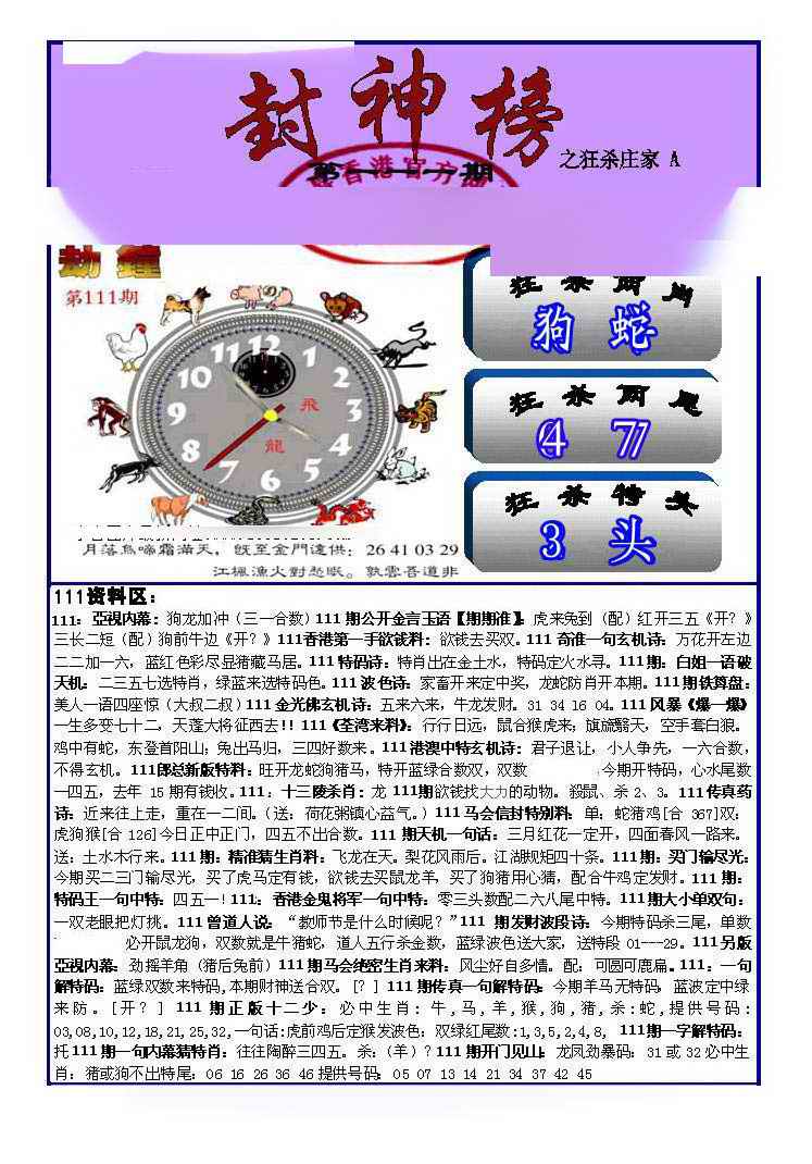 1460 封神榜B 1461 六合风云A 1462 六合风云B 1463 曾道人内幕泄密