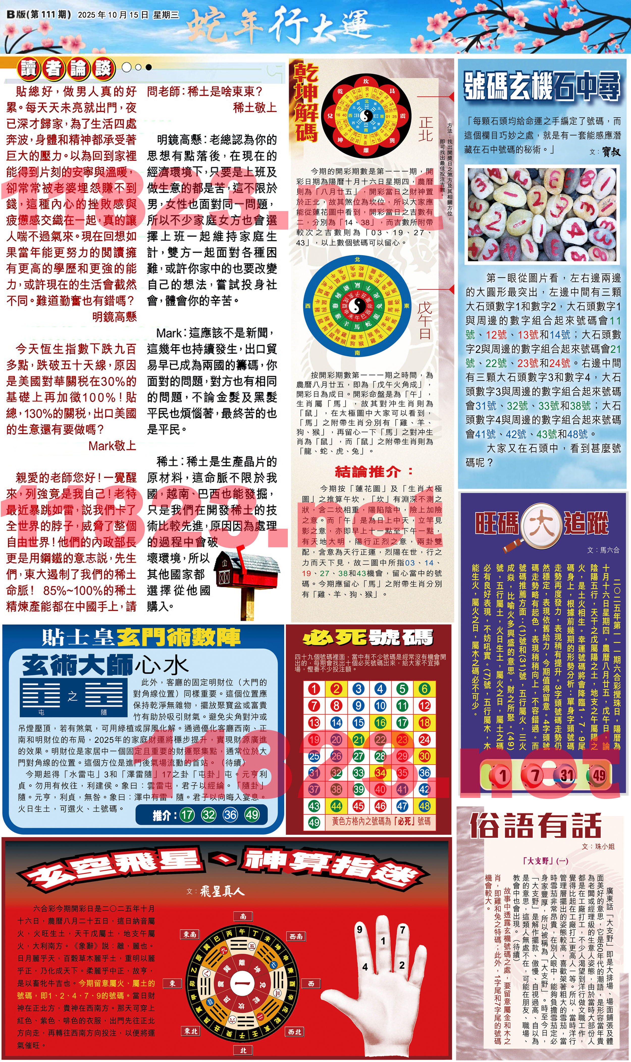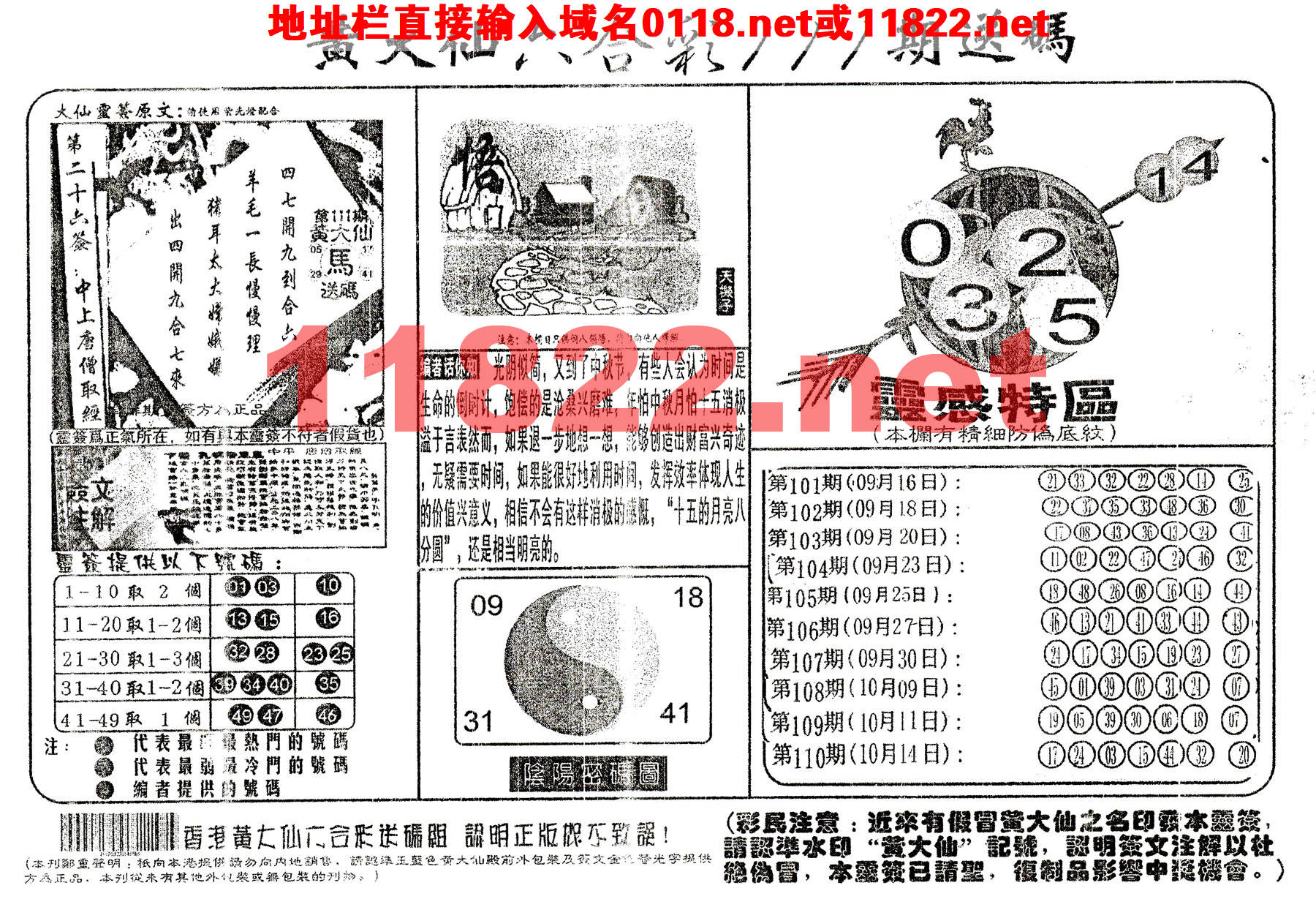 019 黄大仙救世报A 020 黄大仙救世报B 021 香港黄大仙报A 022 香港黄大仙报B