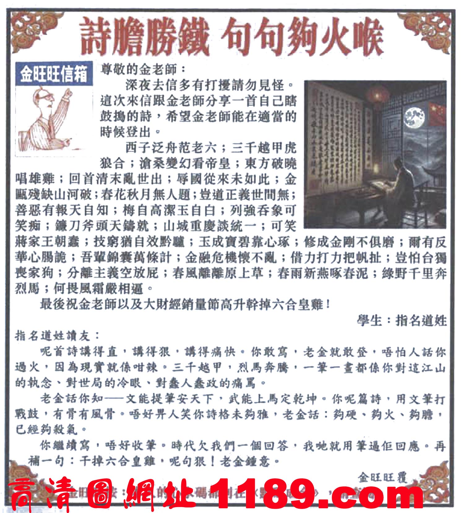 1720 六合神话 1721 台湾凤姐 1722 内部传真 1723 小贴士A